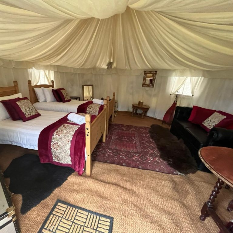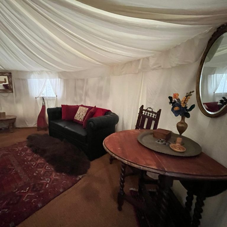 Real beds, rugs and soft lighting for true glamping luxury. Ideal for festival guests and overnight stays.