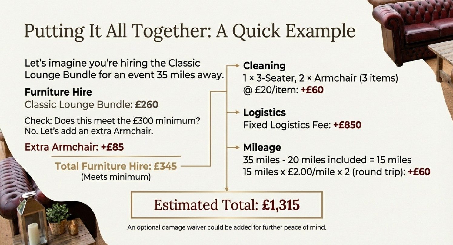 Select individual pieces to create a completely custom layout. All prices are for a standard 3-day hire